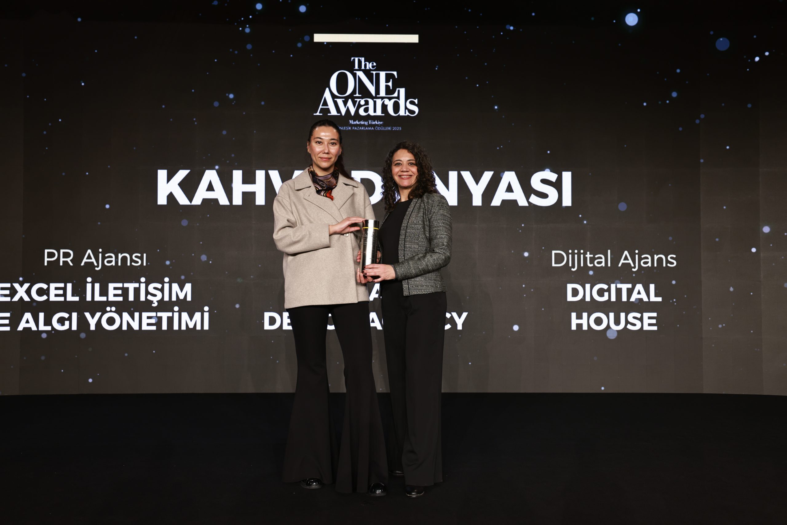 Kahve Dünyası, pazarlama ve iletişim alanındaki başarılı çalışmalarıyla The ONE Awards Bütünleşik Pazarlama Ödülleri kapsamında “Kafe” kategorisinde birincilik ödülüne layık görüldü. Kahve Dünyası, tüketiciler nezdinde yarattığı güven, samimiyet ve güçlü marka algısıyla kafe kategorisinde zirveye yerleşti.